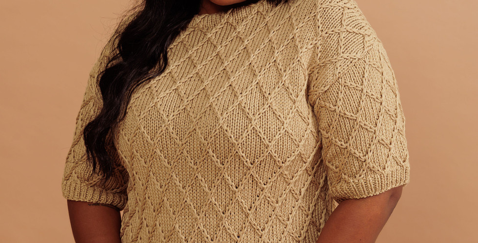 Assembling: use a tapestry needle and Aloe Vera in the color chestnut. Seam the shoulders (16 cm) and the sides of the body (34 cm), leaving 21 cm on each side for the armholes. Seam the sleeves and attach them to the body. Fold the neckline and seam it as well- it should be 3 cm wide.