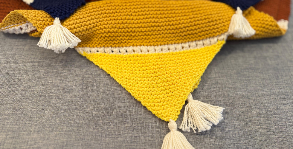 Attach the tassels to each corner of the blanket, securing them really well. Weave in the remaining ends. Your blanket is done!