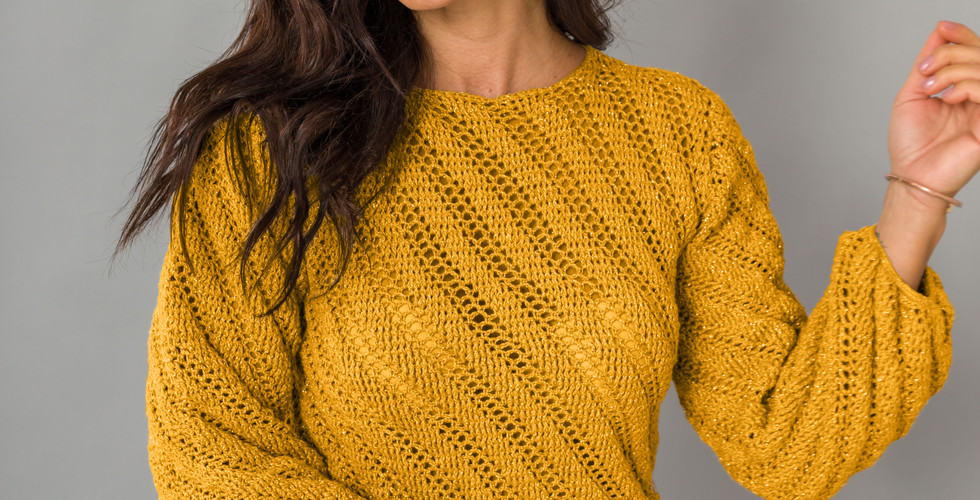 3 (4, 4, 5, 6, 6) skeins of Glamour – Color: 7030 (Mustard);