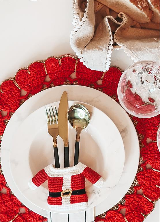 Impress your family and guests on Christmas dinner! This amazing silverware holder is perfect to decor your dinner table. Made with our Amigurumi yarn.